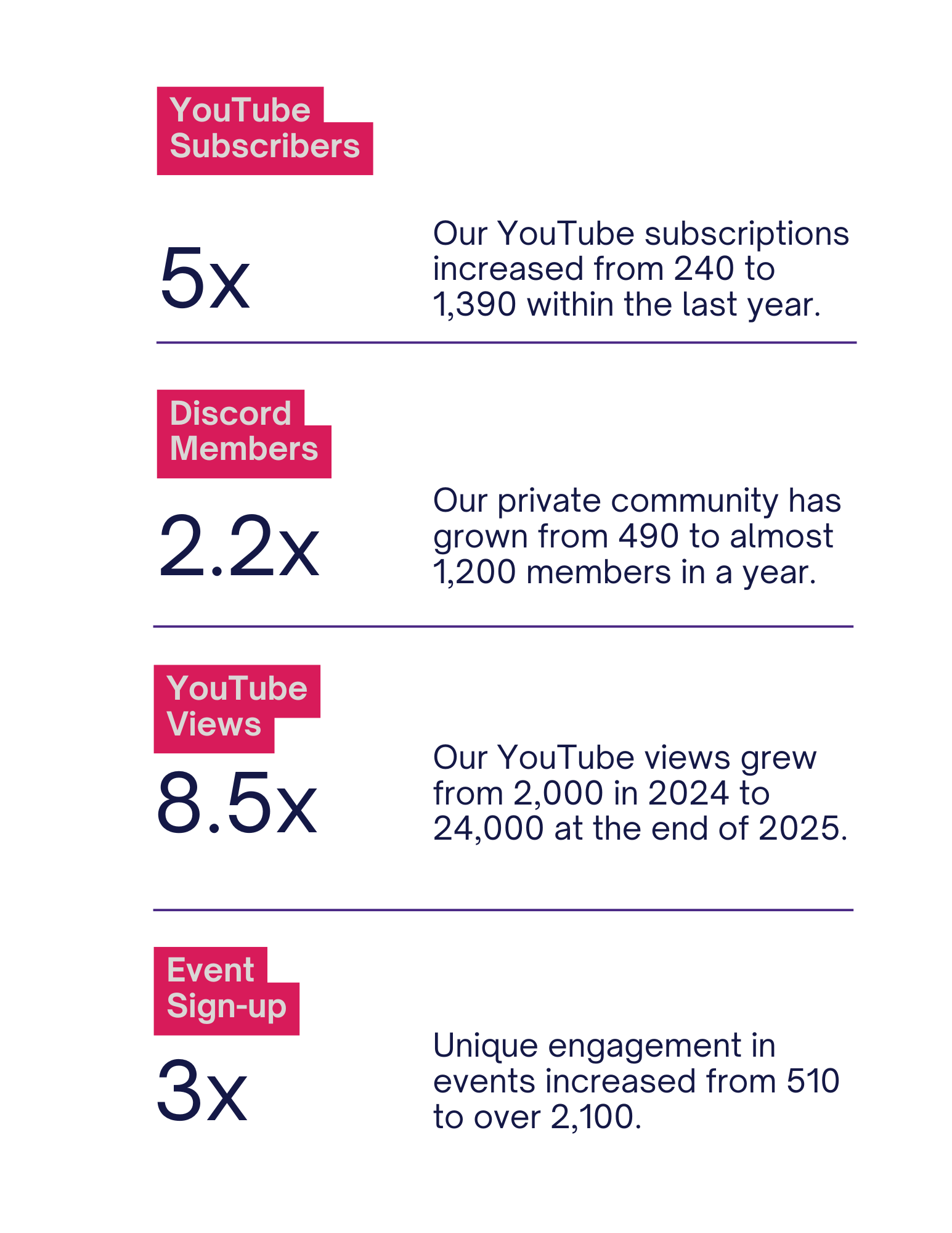 Event Sign-ups: Unique engagement in our events increased 3x, with over 2,100 people joining the conversation.